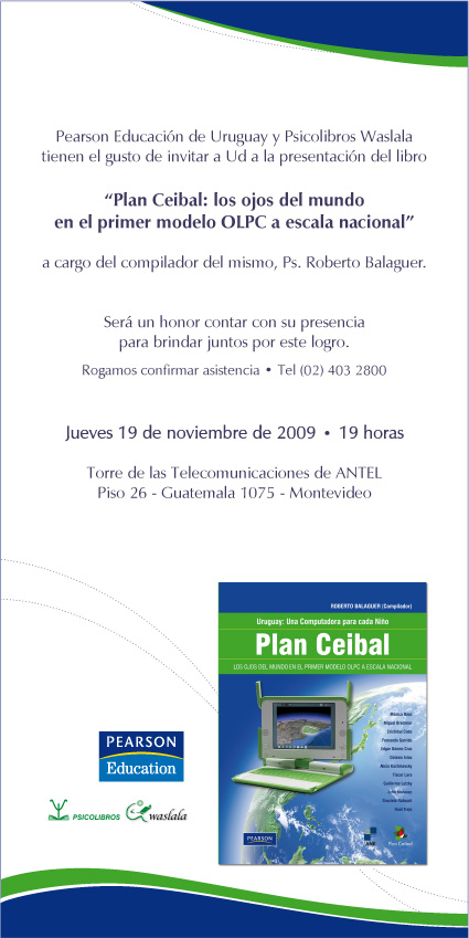 19 nov 19 hs – Presentación libro sobre Plan Ceibal Publicado el noviembre 18, 2009 por Vida y Educación Comparte esto: Compartir en LinkedIn (Se abre en una ventana nueva) LinkedIn Comparte en Facebook (Se abre en una ventana nueva) Facebook Imprimir (Se abre en una ventana nueva) Imprimir Enviar un enlace a un amigo por correo electrónico (Se abre en una ventana nueva) Correo electrónico Me gusta Cargando... Relacionado