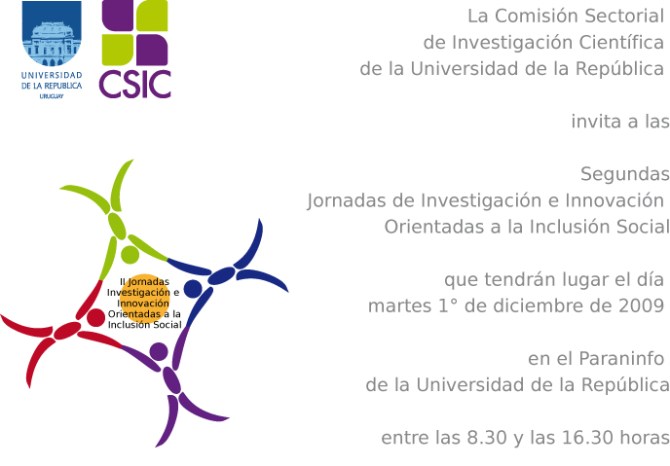 El texto que sigue es una Invitación-Convocatoria a las Segundas Jornadas de Investigación e Innovación Orientadas a la Inclusión Social. En nombre de la Universidad de la República esperamos contar con su participación.