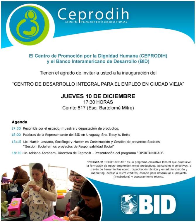 10 dic – 17:30 – Inauguración del Centro Integral para el Empleo de Ciudad Vieja – Ceprodih