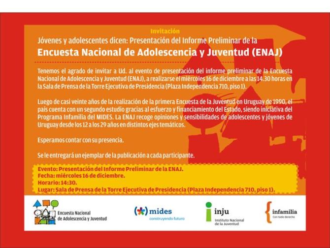 16 dic – 14:30 hs – Presentacion Informe Preliminar Encuesta Nal. Adolescenca y Juventud