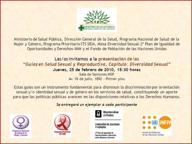 100225 – 25 feb 15:30 hs – Presentación «Guías en Salud Sexual y Reproductiva, Capítulo: Diversidad Sexual» – MSP