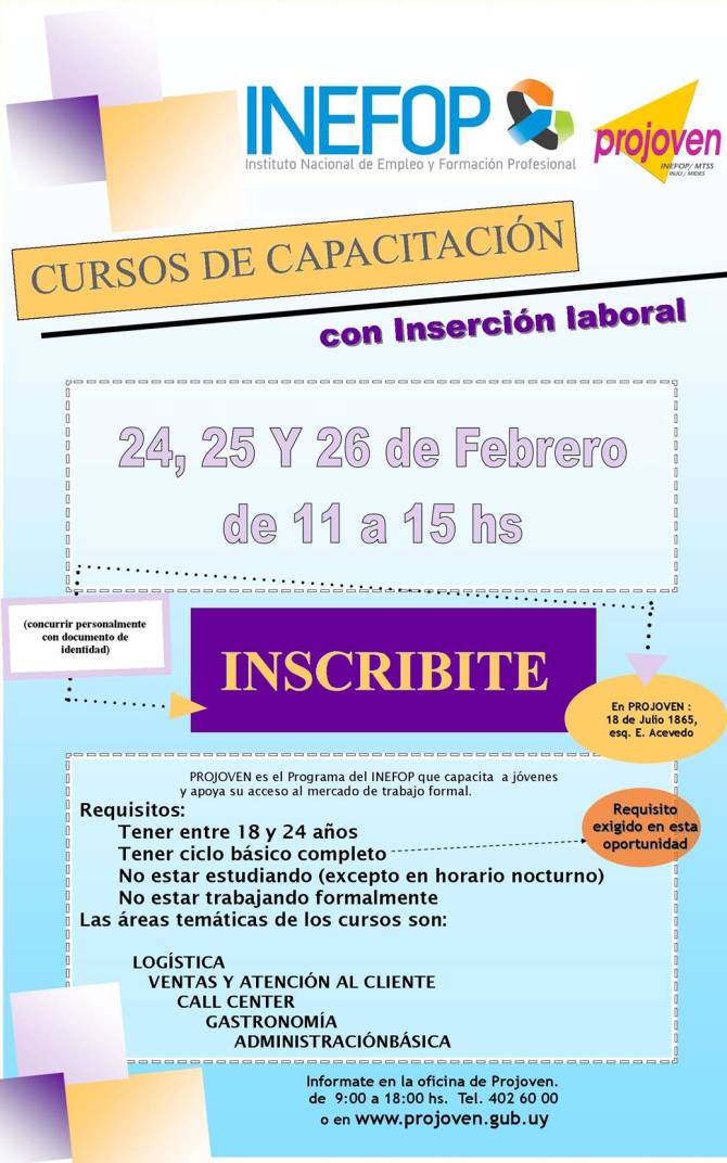 100226 – hasta 26 feb – Inscripción en Cursos Projoven – INEFOP