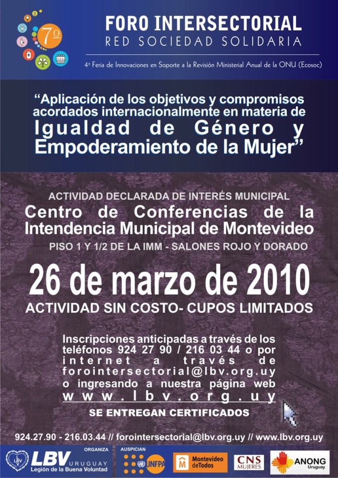 100326 – 26 marzo – Foro Intersectorial «Igualdad de género y empoderamiento de la mujer» – Red Sociedad Solidaria