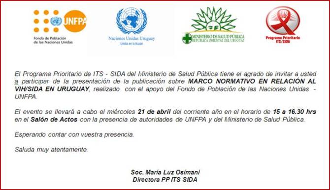 100421 – 21 abril 15 hs – Presentación “Marco Normativo en relación al VIH/SIDA en Uruguay”