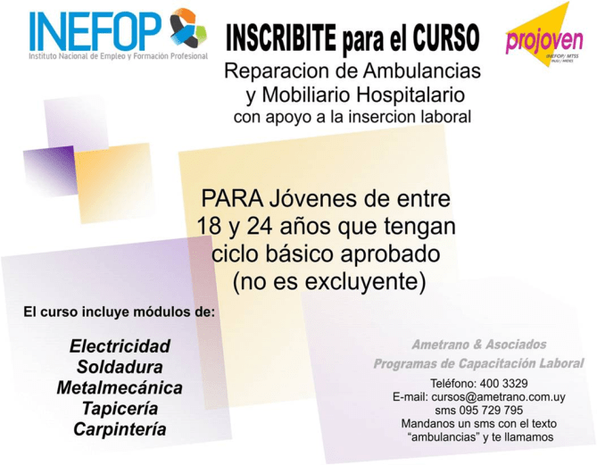 Es para jóvenes de ambos sexos entre 18 y 24 años, que no estén trabajando formalmente y en caso de estar estudiando debería ser en horario nocturno. Preferiblemente con vocación hacia tareas manuales y de taller metalúrgico y/o mecánico, etc. Adjuntamos afiche para la difusión.