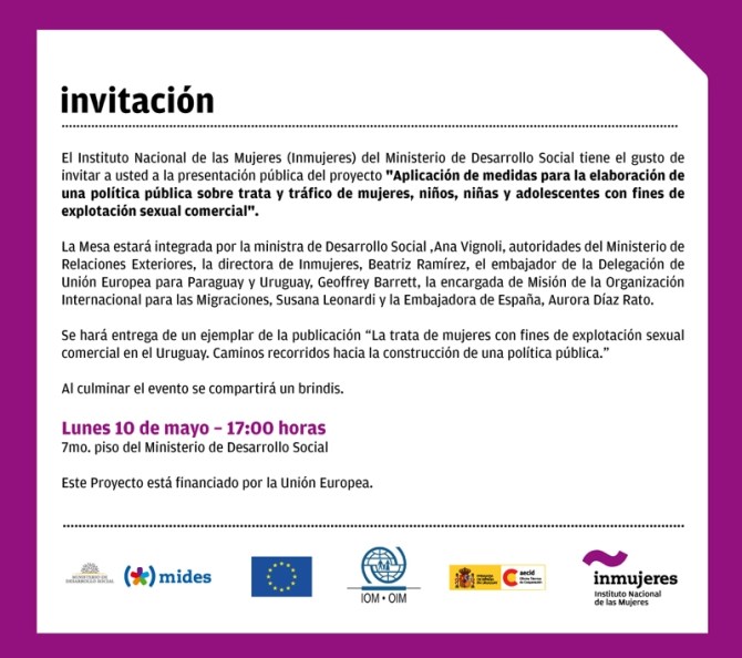100510-10 mayo 17 hs. – Presentación Proyecto “Aplicación de medidas para una política publica sobre trata y tráfico de mujeres, niños y adolescentes”