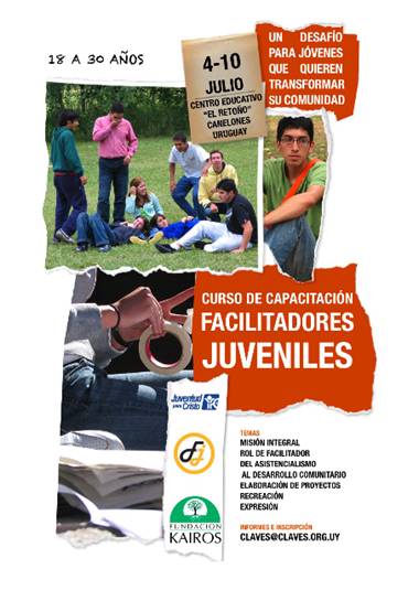 El Programa de Facilitadores Juveniles (Fundación Kairós), se propone contribuir a la formación de jóvenes cristianos de 17 a 30 años enviados y apoyados por sus Iglesias locales, ofreciendo herramientas en el marco de la Misión Integral.