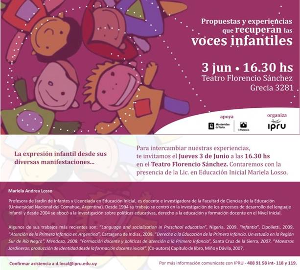 100603 – 3 junio 16:30 hs – Propuestas y experiencias que recuperan voces infantiles . IPRU