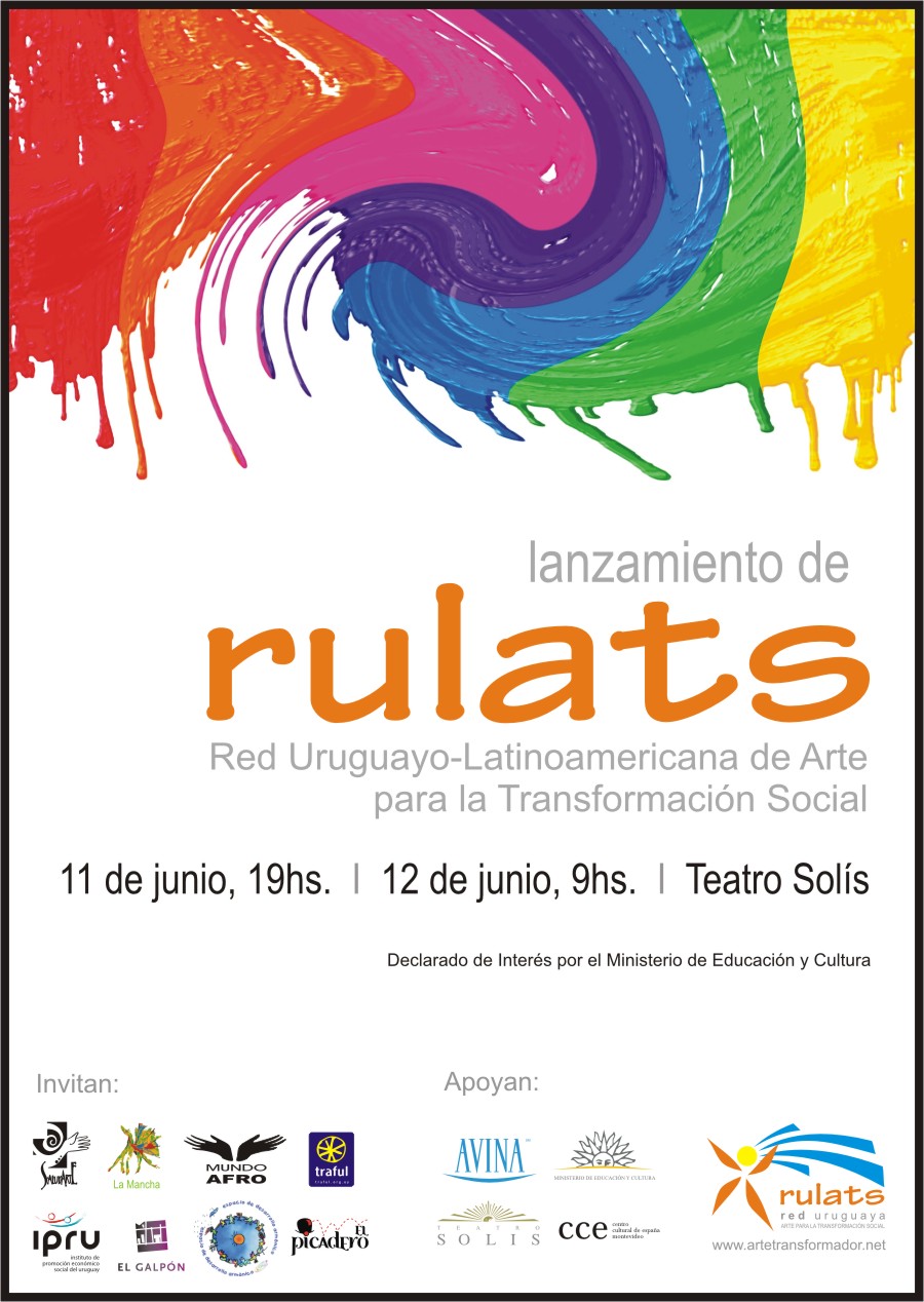 En los próximos días 11 y 12 de junio del corriente año tendrá lugar en la Sala de Conferencias del Teatro Solís el evento de lanzamiento de la Red Uruguayo-Latinoamericana de Arte para la Transformación Social (RULATS), miembro de la Red Latinoamericana de Arte para la Transformación Social (RLATS) y de “Puntos de Cultura” como política cultural del continente, conjuntamente con la Articulación Latinoamericana Cultura y Política (ALCP).