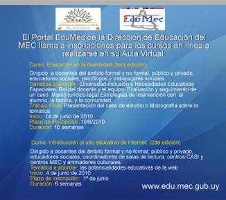 - El Proyecto de Formación en Educación a Distancia apunta a capacitar en los procesos, herramientas y metodologías de educación a distancia con uso de TIC (tecnología de información y comunicación). Consiste en tres cursos consecutivos que abordan los principios básicos de la educación a distancia, el uso de entornos virtuales de aprendizaje, la metodología de la tutoría virtual y la digitalización de materiales educativos. Está diseñado con un enfoque práctico para implementar la educación a distancia con uso de TIC en distintos ámbitos. Este segundo curso se focaliza en el rol y las atareas del Tutor en EaD.