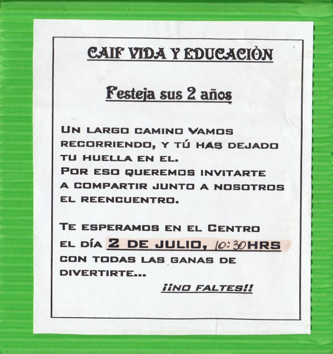 100702 – 2 julio 10:30 hs – El CAIF de VIDA Y EDUCACION en Barros Blancos cumple 2 años