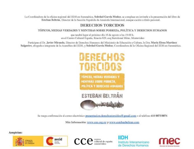 100816 – 16 agosto – 19 hs – Presentación del libro: DERECHOS TORCIDOS, tópicos, medias verdades y mentiras sobre pobreza, política y derechos humanos
