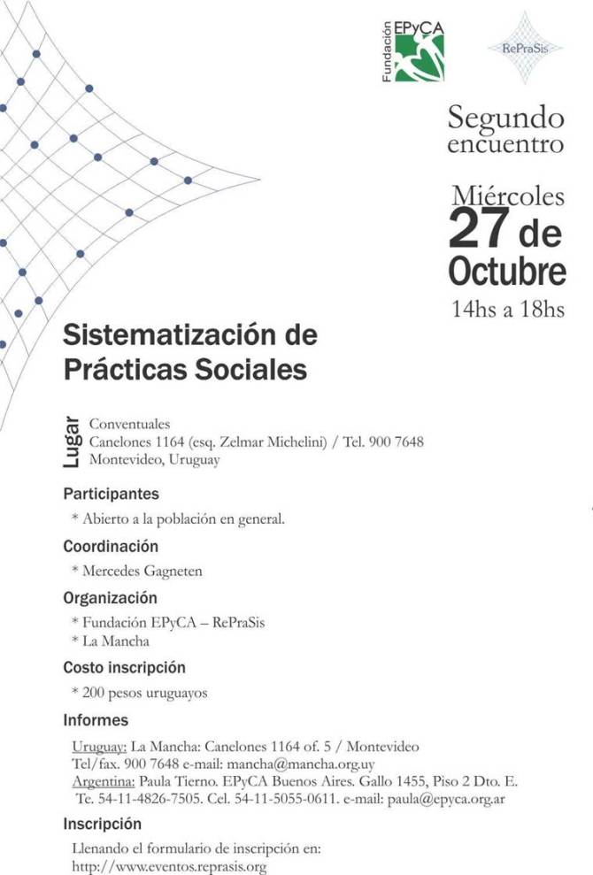 101027 – 27 octubre, de 14a 18 hs. – 2º Encuentro sobre “Sistematización de Prácticas Sociales”