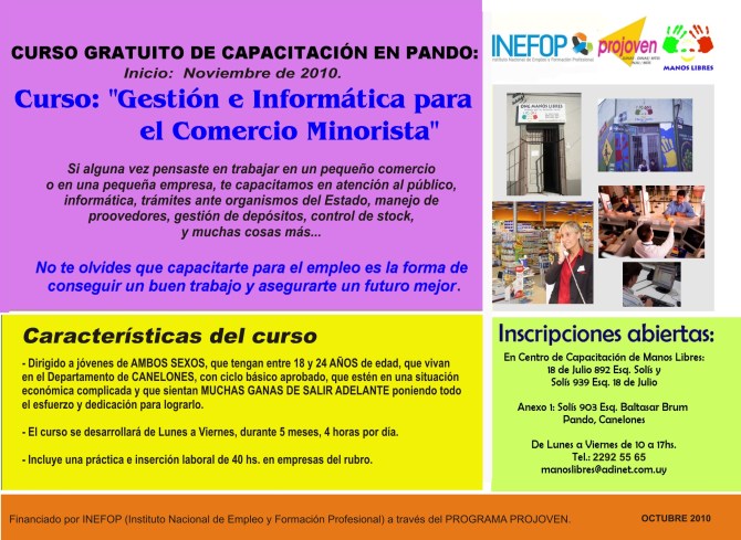 101101 – noviembre – Projoven/Inefof- Curso Capacitación en Pando: “Gestión e Informática para el Comercio Minorista”