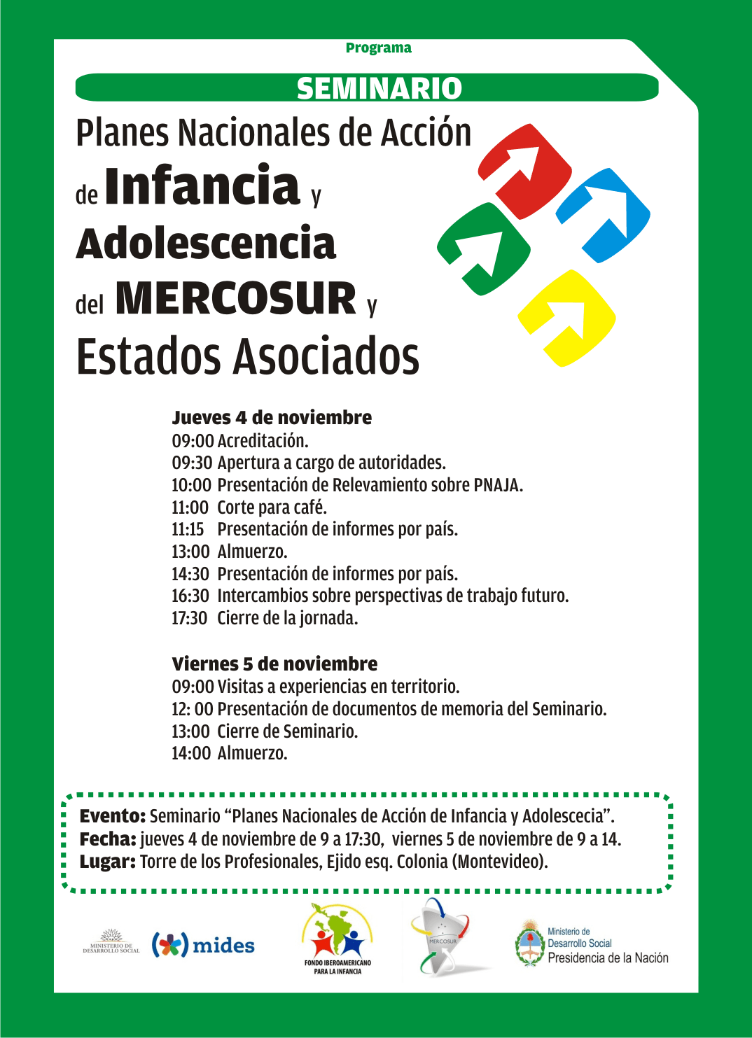 101104 – 4 y 5 noviembre – Seminario Internacional “Planes Nacionales de Acción de Infancia y Adolescencia del Mercosur y Estados Asociados”