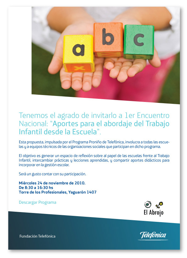 101124 – 24nov., 8:30 a 16:30 – 1er. Encuentro sobre «Aportes para el abordaje del trabajo infantil en la escuela»