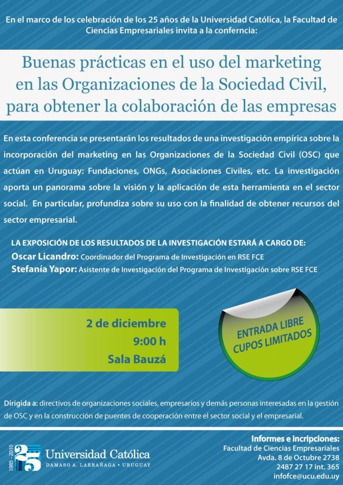 101202 – 2 dic., 9 hs. – UCU: Conferencia «Buenas prácticas en el uso del marketing en las OSC…»