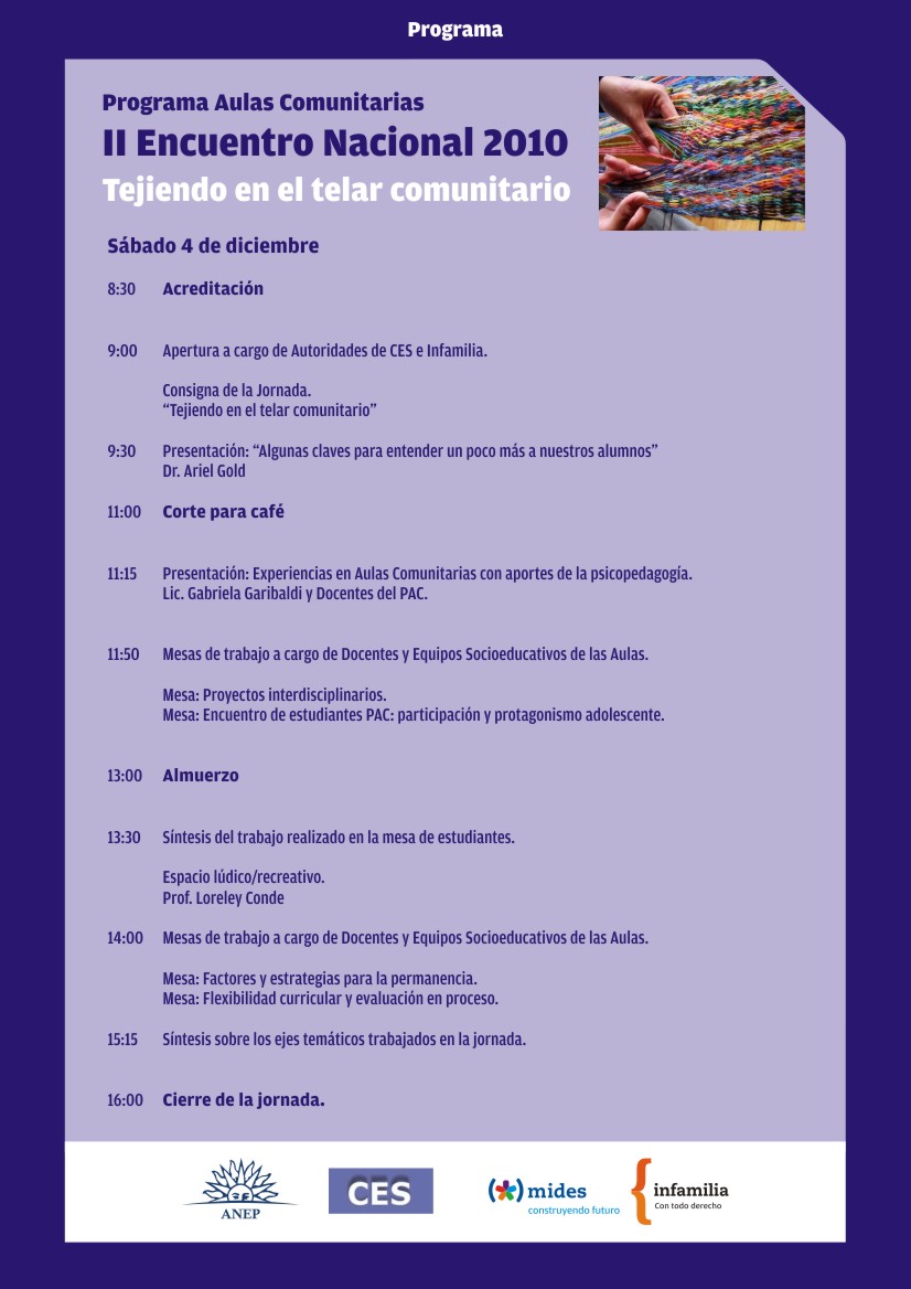 101204 – 4 dic., 8:30 a 16:30 hs. – II Encuentro Nacional 2010 – Programa Aulas Comunitarias