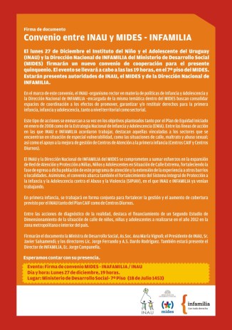 101227 – 27 dic. 19 hs. – Firma de nuevo acuerdo MIDES / INAU