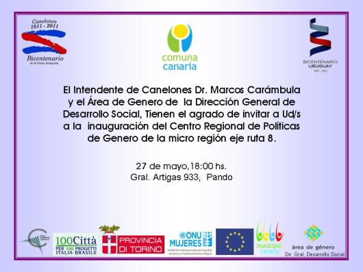 Les remitimos invitación para la inauguración del Centro Regional de Políticas de Género dependiente del Área de Género y Equidad de la Comuna Canaria.