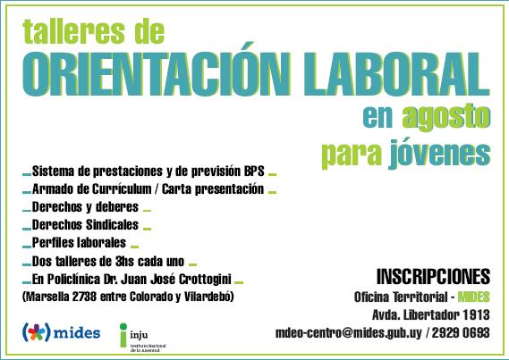 110801 – Agosto: Talleres de Orientación Laboral para jóvenes – INJU – Mides