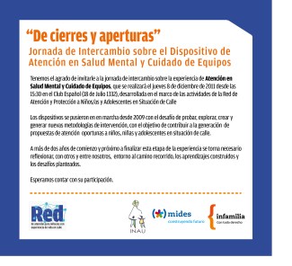 111208 – 8 diciembre 15:30 hs – «De cierres y aperturas» Jornada de intercambio sobre el dispositivo de Atención en SaludMental y Cuidado de Equipos