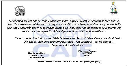invitacion inauguracion CAIF Vida y Educacion