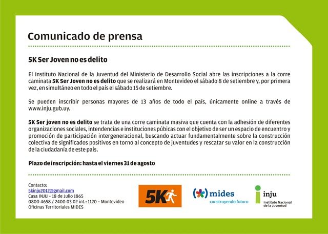Publicado julio 19, 2012 en 640 × 457 en 120908 – 8 set – Correcaminata 5 k: Ser joven no es delito – Inscripciones hasta el 31 de agosto