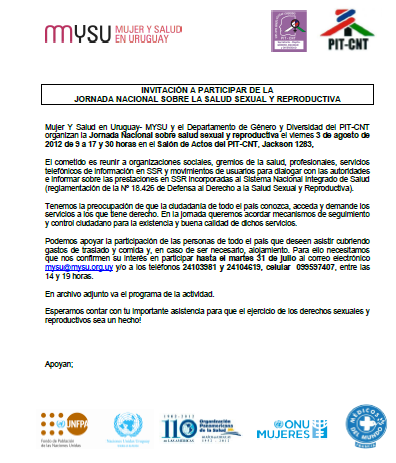 9:30 hsApertura de la Jornada, a cargo de representantes de MYSU y PIT-CNT y de las instituciones que apoyan.