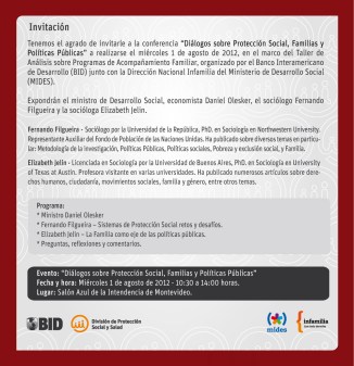 120801 – 1 agosto, 10:30 hs – Conferencia «Diálogos sobre Protección Social, Familias y Políticas Públicas
