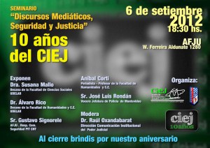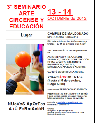 - Encuentro de Seguimiento a los compromisos país por tema Violencia: Nuestra compañera Clyde estará participando (creo que lo está haciendo estos días) en Lima, como representante de las organizaciones de la sociedad civil Uruguay, nucleadas en la Redlamyc, en un encuentro en el que participa gobiernos y soc. civil, de carácter regional, para discutir avances en relación a las acciones que los gobiernos han ido implementando en materia de políticas públicas, legislativas, etc, sobre Violencia contra niños, niñas y adolescentes.