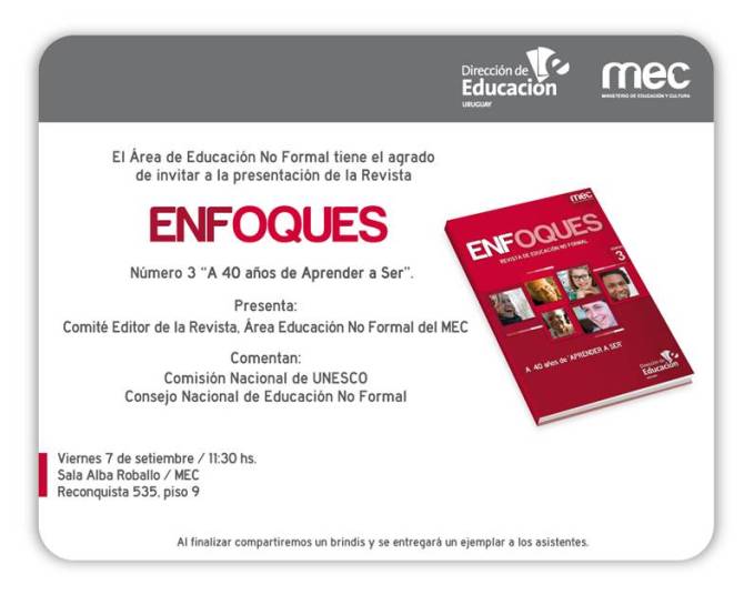 120907 – 7 set., 11:30 hs. – Presentación de Revista ENFOQUES N° 3 – Educación No Formal