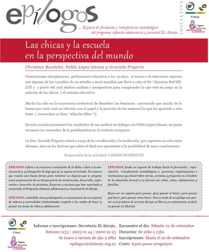 EPÍLOGOS Espacio de Formación y transferencia metodológica del programa infancia, adolescencia y juventud El Abrojo.