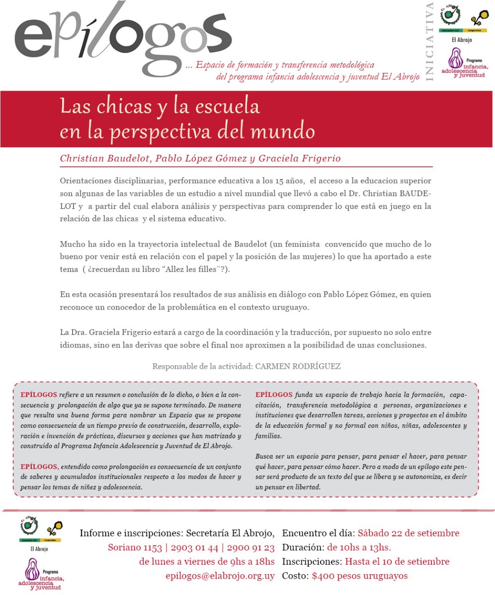 Publicado septiembre 5, 2012 en 1044 × 1256 en 120922 – 22 set. 10 a 13 hs – EPÍLOGOS: “LAS CHICAS Y LAS ESCUELA EN LA PERSPECTIVA DEL MUNDO”