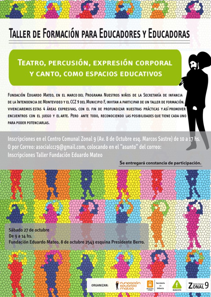 121027 – 27 octubre,9 a 14 hs – Taller para Educadores: Teatro, Percusión, Expresión Corporal y Canto como espacios educativos – Fundación Eduardo Mateo