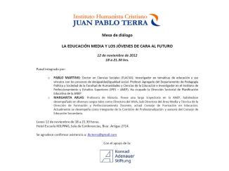 El Instituto Humanista Cristiano Juan Pablo Terra se propone aportar al debate de estos temas. Para cumplir con tal objetivo los invitamos a dialogar en forma abierta y creativa a partir del aporte y reflexión de profesionales de dilatada trayectoria académica y especialistas en educación.