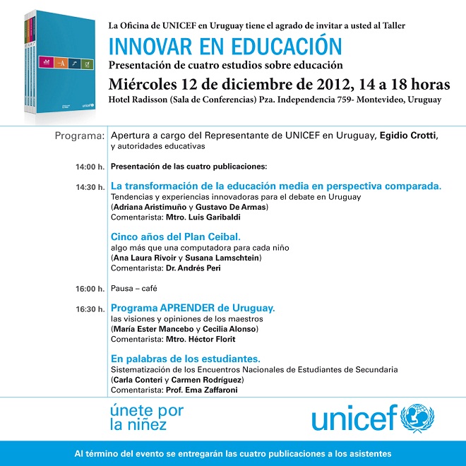 Publicado diciembre 3, 2012 en 660 × 660 en 121212 – 12 diciembre, de 14 a 18 hs – Taller «Innovar en Educación» – UNICEF