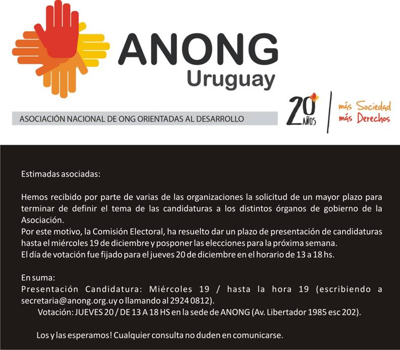 image00278 Publicado diciembre 13, 2012 en 792 × 692 en 121214 – 20 diciembre de 14 a 18:30 – Elecciones de Comisiones Directiva y Fiscal de ANONG Comparte esto: Compartir en LinkedIn (Se abre en una ventana nueva) LinkedIn Comparte en Facebook (Se abre en una ventana nueva) Facebook Imprimir (Se abre en una ventana nueva) Imprimir Enviar un enlace a un amigo por correo electrónico (Se abre en una ventana nueva) Correo electrónico Me gusta Cargando...