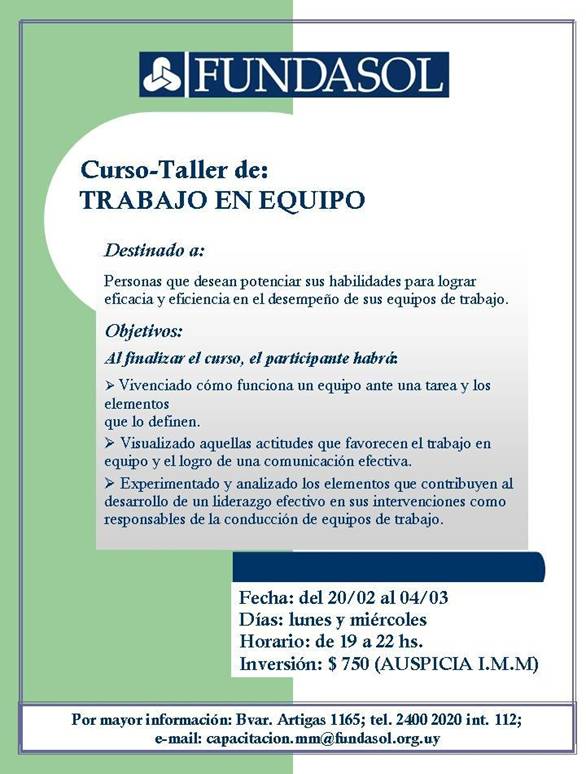 Publicado enero 2, 2013 en 586 × 774 en 130220 – 20 feb al 4 mar – FUNDASOL: Curso Taller de Trabajo en Equipo