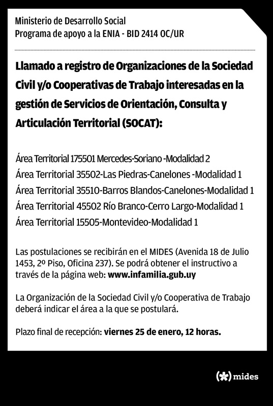 Publicado enero 4, 2013 en 537 × 800 en 130208 – hasta 8 febrero – Llamado a registro de OSC y/o Cooperativas deTrabajo interesadas en la gestión de SOCAT en BBlancos y otros