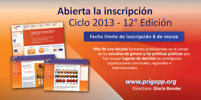 flacso 2013 Politicas Género 2.jpg Publicado febrero 26, 2013 en 700 × 349 en 130308 – hasta 8 marzo – Inscripciones para Maestría Virtual en Género, Sociedad y Políticas, FLACSO Siguiente → Comparte esto: Compartir en LinkedIn (Se abre en una ventana nueva) LinkedIn Comparte en Facebook (Se abre en una ventana nueva) Facebook Imprimir (Se abre en una ventana nueva) Imprimir Enviar un enlace a un amigo por correo electrónico (Se abre en una ventana nueva) Correo electrónico Me gusta Cargando...