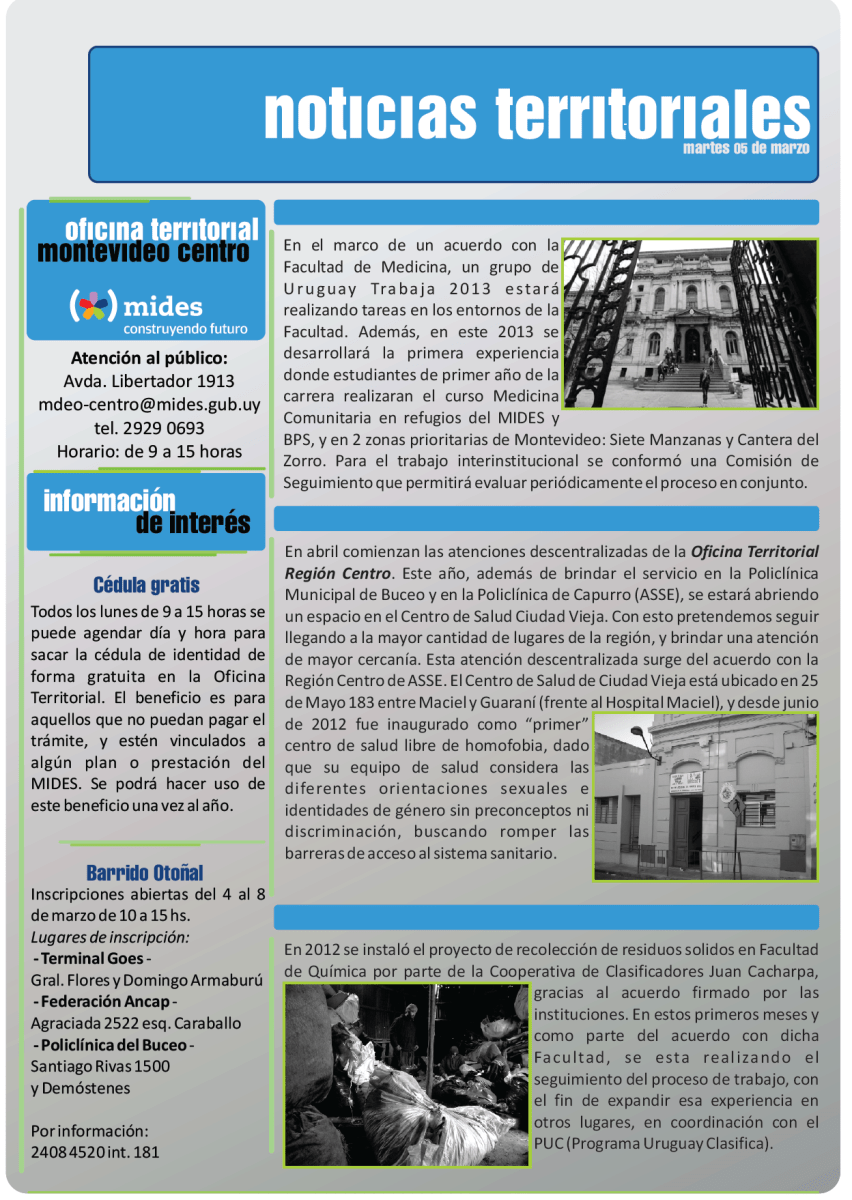 Publicado marzo 5, 2013 en 1248 × 1758 en 130306 – Noticias Territoriales – Mides Mdeo Centro