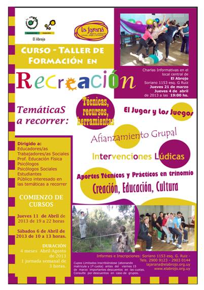 Publicado marzo 7, 2013 en 402 × 570 en 130411 – ddesde 11 abril – Curso-taller de formación en RECREACIÓN – La Jarana, El Abrojo