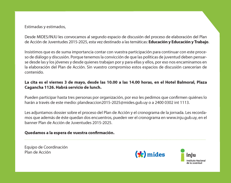 Publicado mayo 2, 2013 en 792 × 628 en 130503 – 3 mayo de 10 a 18 hs – Espacio de Discusión Plan de Acción de Juventudes 2015-2025
