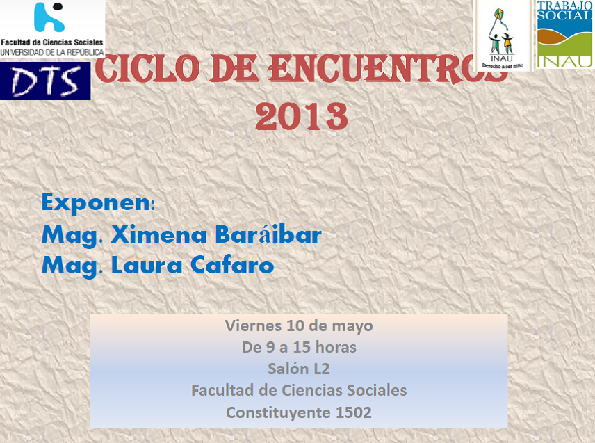 Trab Sociales Publicado mayo 7, 2013 en 856 × 637 en 130510 – 10 mayo, de 9 a 15 hs – ENCUENTRO TRABAJADORES Y TRABAJADORAS SOCIALES DE INAU Comparte esto: Compartir en LinkedIn (Se abre en una ventana nueva) LinkedIn Comparte en Facebook (Se abre en una ventana nueva) Facebook Imprimir (Se abre en una ventana nueva) Imprimir Enviar un enlace a un amigo por correo electrónico (Se abre en una ventana nueva) Correo electrónico Me gusta Cargando...