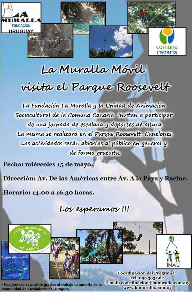 Publicado mayo 9, 2013 en 768 × 1165 en 130515 – 15 mayo de 14 a 16:30 hs – La Muralla invita a escalada y deportes de altura en Parque Roosevelt