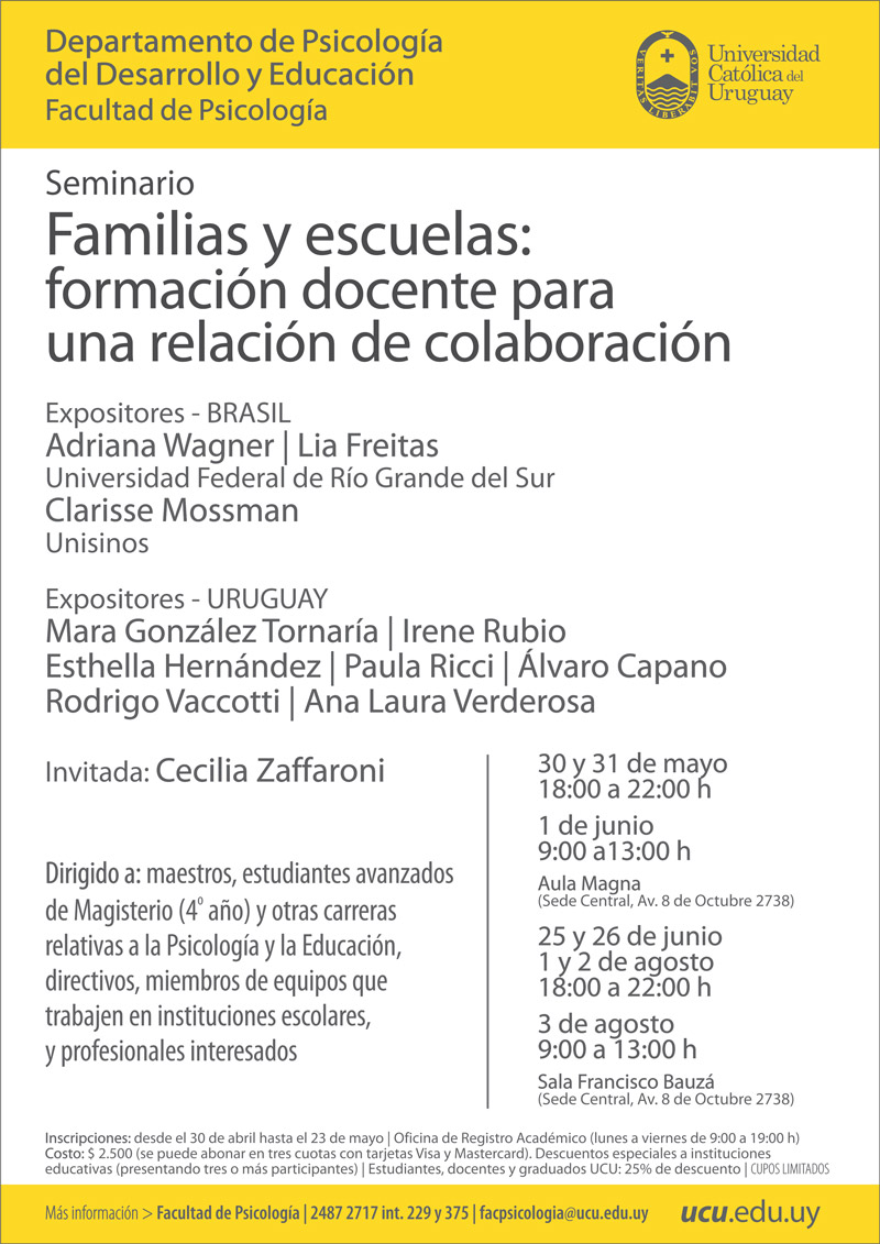Publicado mayo 16, 2013 en 800 × 1131 en 130530 – desde 30 mayo – Seminario «Familias y escuelas: formación docente para una relación de colaboración» – Univ. Católica Uruguay