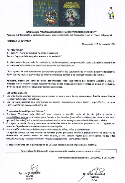Publicado julio 2, 2013 en 424 × 620 en 130701 – INAU lanza «AGENDADELNOSEQUEHACERENVACACIONESDEJULIO»