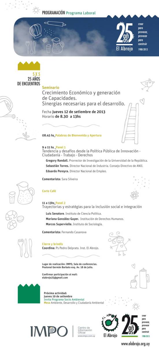 image001126 Publicado septiembre 10, 2013 en 968 × 2112 en 130912 – 12 setiembre, de 8:30 a 13 hs – Seminario «Crecimiento económico y generación de capacidades» – El Abrojo Comparte esto: Compartir en LinkedIn (Se abre en una ventana nueva) LinkedIn Comparte en Facebook (Se abre en una ventana nueva) Facebook Imprimir (Se abre en una ventana nueva) Imprimir Enviar un enlace a un amigo por correo electrónico (Se abre en una ventana nueva) Correo electrónico Me gusta Cargando...