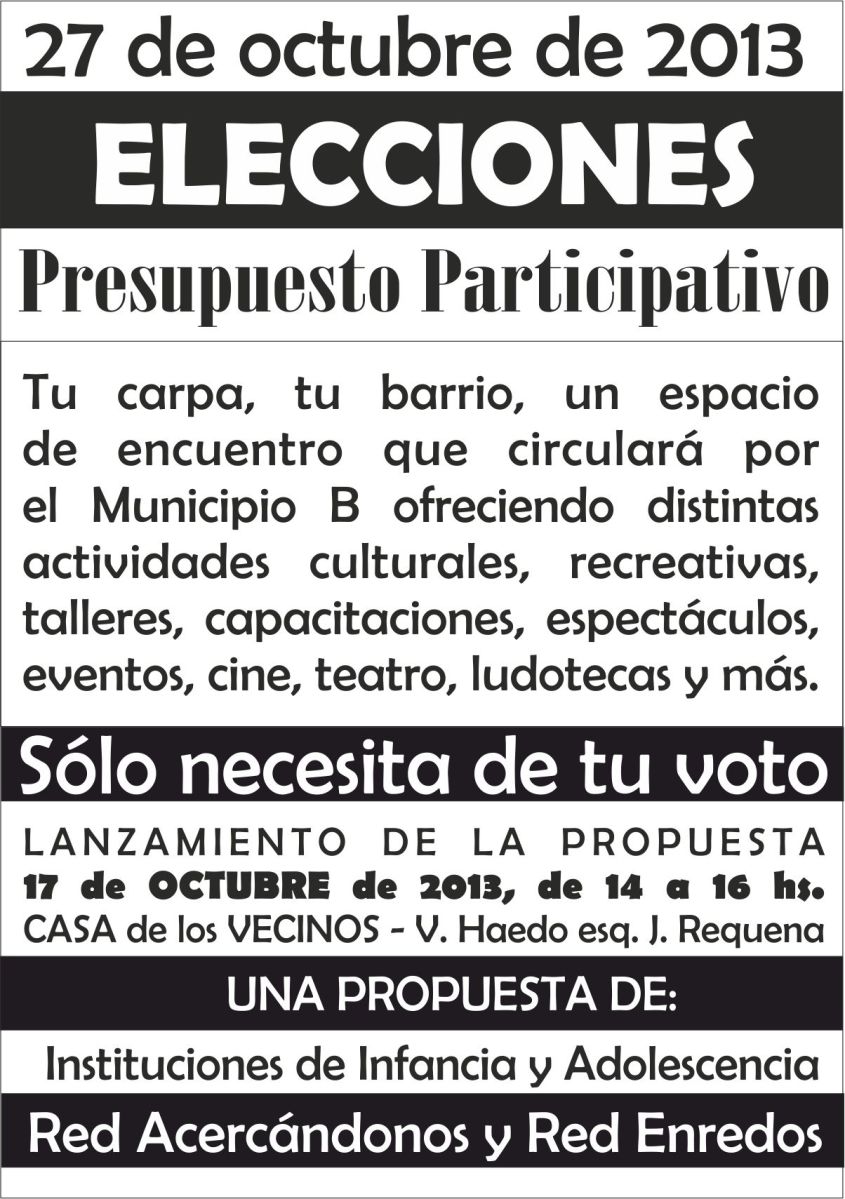 Publicado octubre 1, 2013 en 1204 × 1709 en 131027 – Vida y Educación con Redes ENREDOS y ACERCÁNDONOS: El 27 de octubre VOTÁ TU CARPA en el Presupuesto Participativo